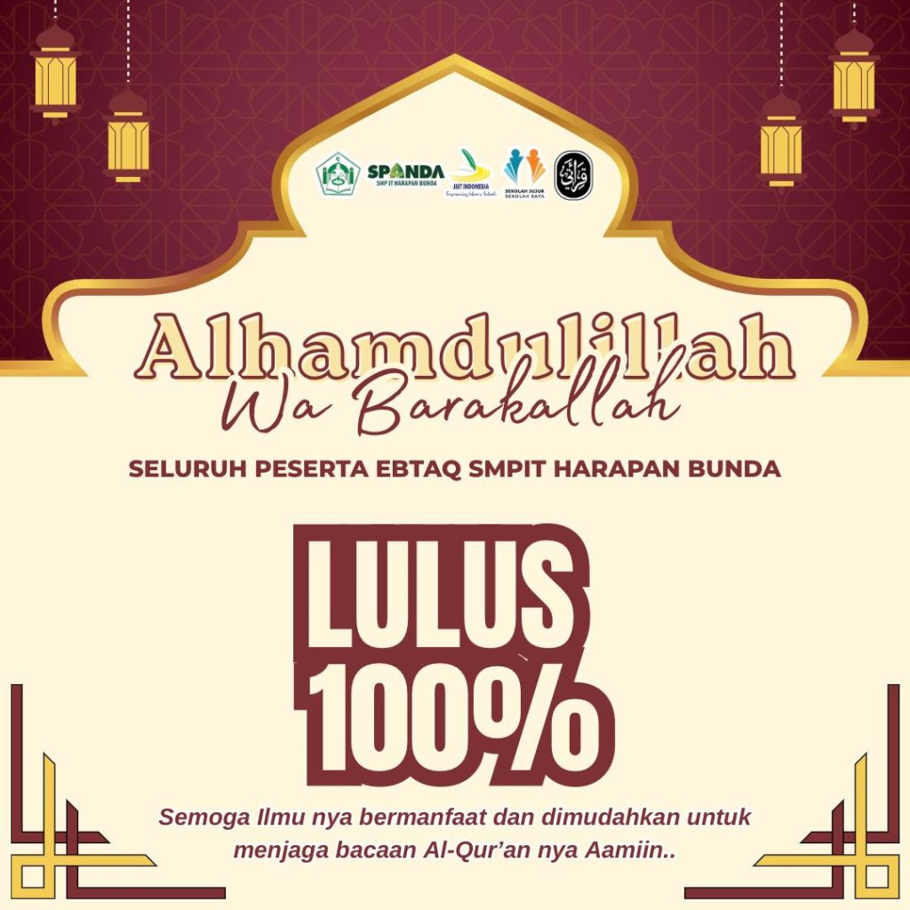 Alhamdulillah Wa Barakallah Seluruh Peserta EBTAQ SMPIT Harapan Bunda Lulus 100 %, Semoga ilmunya bermanfaat dan dimudahkan untuk menjaga bacaan Al- Qur’annya Aminn