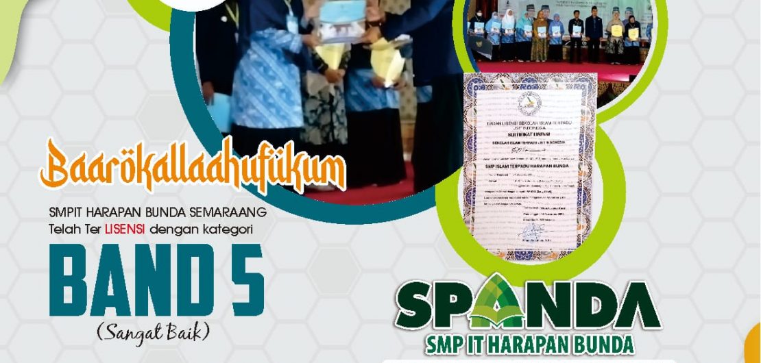 Barokallah SMPIT Harapan Bunda Semarang Telah Ter LISENSI dengan Kategori BAND 5 (Sangat Baik) Oleh Badan Lisensi Sekolah Islam Terpadu (BLSIT) JSIT Indonesia Tahun 2022